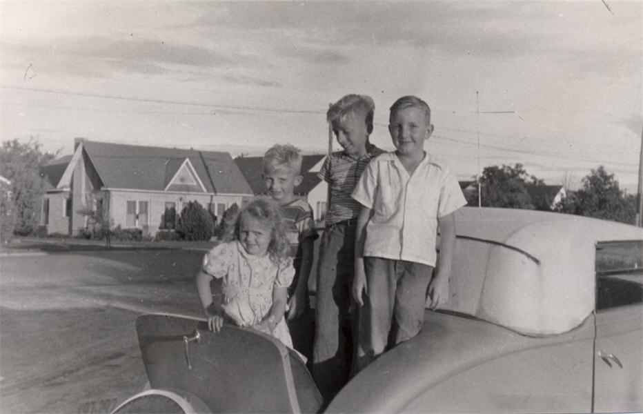 | D.J., Stewart and Vic Gillett, and A.J. Hoover, Jr. ride in the Packard rumble seat. | |