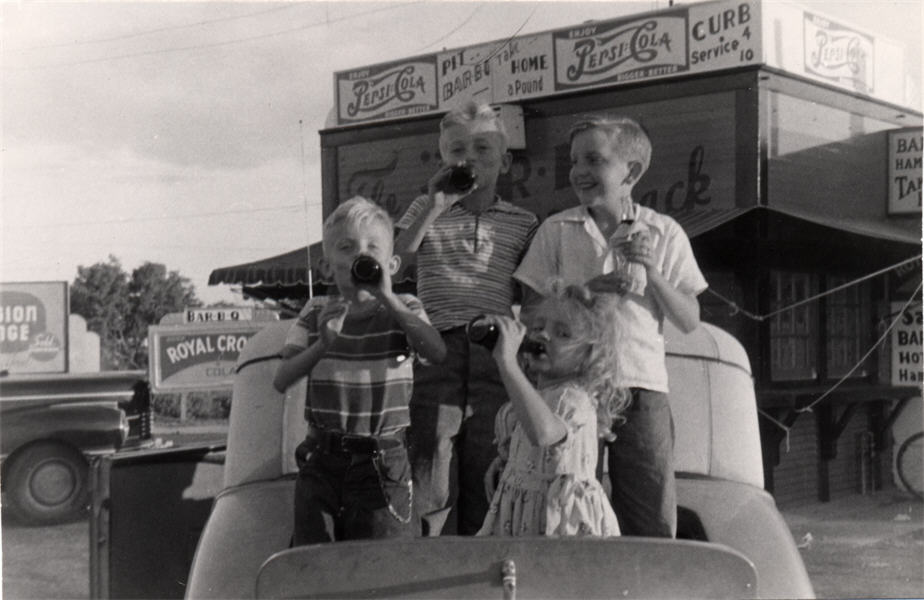 | Dorothy Jean and I went to Sunday School and Church then went by your Mom's -. I felt so - - - - puny (asthma) today I guess I should have stayed home in bed – but I hate to disappoint D.J. We ate dinner with your folks. Your Dad & Uncle Jeff went to the country -. We went out to Hope's – to the Gillett family they are here on the way to Waco – they are considering moving there -. We made the kid's picture, took them riding in the rumble seat and bought them soda pop -. They really had a big time -. You know Stewart is kinda fond of D.J. Late in the evening there were about 14 or 15 Kempers & etc. – all gathered out there -. Did your ears burn -? We talked about you! |